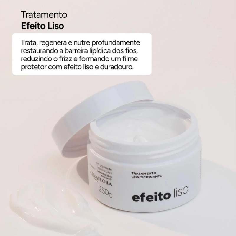 Máscara de tratamento para cabelos alisados por processos químicos ou por instrumentos térmicos. Acquaflora Efeito Liso Máscara nutre e confere hidratação profunda enquanto cria uma película protetora sobre os fios que garante um liso perfeito por mais tempo. Além disso, Acquaflora Efeito Liso Máscara também controla e disciplina os fios, eliminando o arrepiado que tanto incomoda. Seu cabelo fica saudável, hidratado e com o liso das famosas de Hollywood.