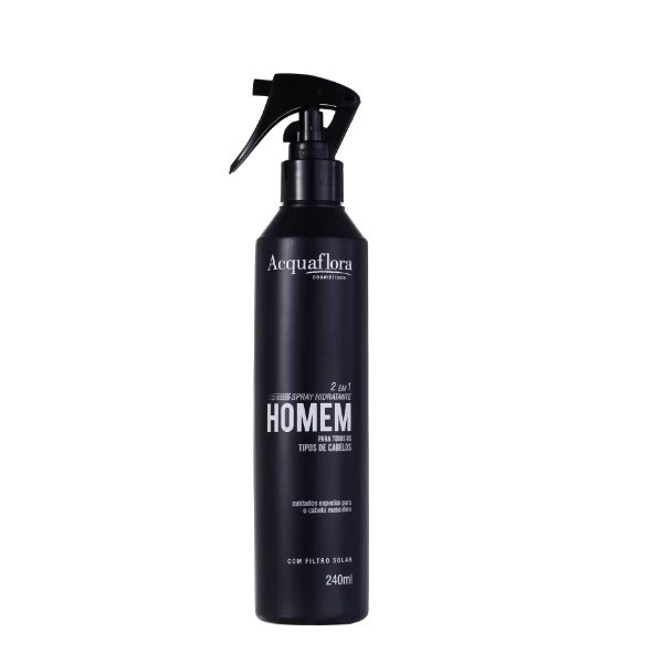 Spray para cabelos masculinos normais, médios a compridos. Acquaflora Homem Normais Spray Hidratante 2 Em 1 condiciona, protege e hidrata, para fios suaves. Ação Sua fórmula contém agentes que condicionam, hidratam e mantém a umidade natural dos fios. Óleo de Oliva: rico hidratante que devolve a elasticidade natural dos fios promovendo brilho. Conselho de Aplicação Com o cabelo limpo e úmido, aplique uma pequena quantidade do leave-in por todo o cabelo. Estilize como desejar. Resultado Cabelos fáceis de pentear, livre daquele frizz indesejado e com brilho intenso.Acquaflora Homem 2 Em 1 - Spray Leave-in 240ml