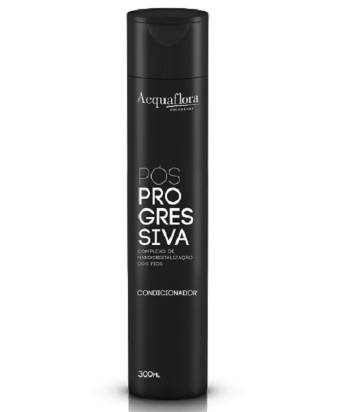 Acquaflora Pós-Progressiva Condicionador pós-progressiva, para cabelos alisados quimicamente. Acquaflora Pós-progressiva Condicionador possui ativos que desembaraçam e reparam o fio danificado, além de promover maior durabilidade do efeito liso. Conselho de Aplicação Aplique no cabelo limpo e úmido, do comprimento às pontas. Enxágue em seguida.