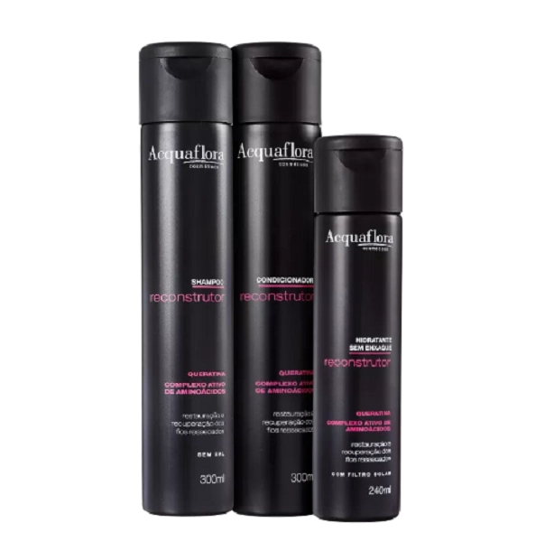 Acquaflora Reconstrutor Shampoo+Condicionador 300ml+Hidrat. s/ Enxague 240ml