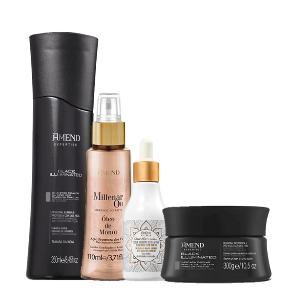 Amend Black Illuminated Realce da Cor Shampoo 250ml Mascara 300g Oleo de Monoi 110ml e Oleo Marroquino 75ml