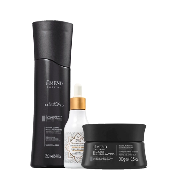 Amend Black Illuminated Realce da Cor Shampoo 250ml Mascara 300g Oleo Marroquino 75ml