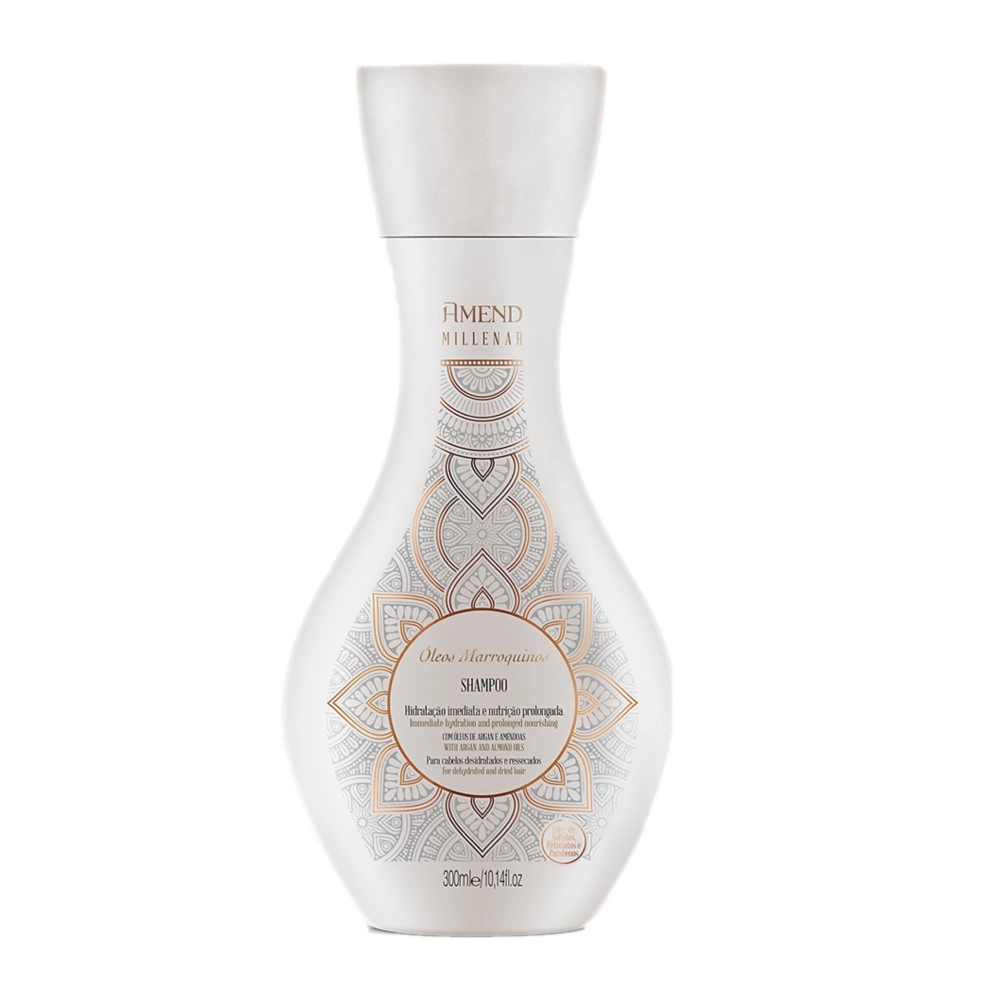 Amend Kit Millenar Óleos Marroquinos Tratamento (2 Produtos) Esse Kit Contém Amend Millenar Óleos Marroquinos - Shampoo 300ml: nutre, hidrata e suaviza a fibra capilar enquanto limpa suavemente. Amend Millenar Óleos Marroquinos Hair Butter - Máscara Capilar 300g: nutre e hidrata a fibra capilar profundamente e de forma imediata. Conselho de Aplicação Shampoo: aplicar nos cabelos molhados, massageando os fios com as pontas dos dedos. Enxágue e repita a operação. Máscara: após lavar os cabelos retire o excesso de água com uma toalha e aplique a máscara do comprimento dos fios até as pontas, massageando mecha por mecha. Deixe agir por 03 minutos. Enxágue bem.