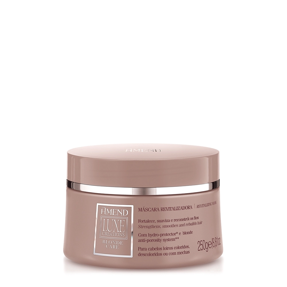 Esse Kit Contém Amend Luxe Creations Blonde Care - Shampoo 250ml: Para cabelos loiros coloridos, descoloridos ou com mechas. Amend Luxe Creations Blonde Care Shampoo fortalece e reconstrói o fio, além de proteger a cor. Traz hidratação ao seu cuidado diário para que o cabelo fique mais brilhante e macio. Ajuda na reposição dos aminoácidos perdidos com as agressões químicas para recuperar a resistência e encorpar a fibra capilar. Sua fórmula faz uma limpeza suave e ainda facilita o desembaraçar. Amend Luxe Creations Blonde Care - Condicionador 250ml: Para cabelos loiros recupera a fibra e aumenta o diâmetro dos fios, eliminando a porosidade e repondo a massa capilar perdida. O Condicionador Amend Luxe Creations Blonde Care proporciona mais elasticidade e melhor penteabilidade aos fios que passaram por processos químicos. Repõe os aminoácidos perdidos e proporciona proteção da cor. Sua fórmula conta com o Hydro-Protector, que auxilia na retenção de água dos fios, mantendo-os hidratados por mais tempo. Amend Luxe Creations Blonde Care - Máscara Capilar 250g: Para cabelos loiros coloridos, descoloridos ou com mechas. Amend Luxe Creations Blonde Care Máscara reconstrói e hidrata intensamente. Combate a porosidade, devolve a elasticidade e revitaliza os fios. Recupera a massa capilar perdida com as agressões químicas para encorpar e melhorar a resistência do cabelo. Impede com que a água saia de dentro do fio, o que traz brilho e maciez. Tudo isso enquanto protege a cor do desbotamento. Conselho de Aplicação Amend Luxe Creations Blonde Care Shampoo Condicionador e Máscara (3 produtos)
