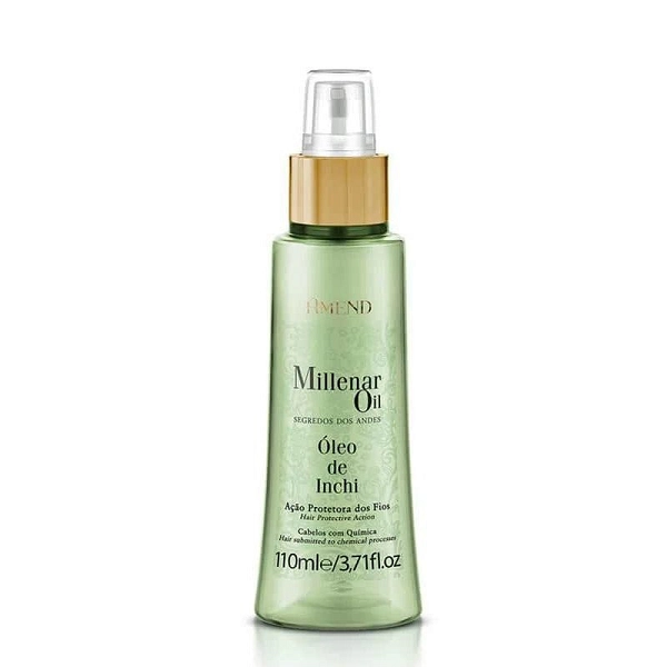 O óleo de Inchi é extraído de uma semente utilizada em segredo há milênios pelo povo Inca que vivia nos Alpes Andinos. Extranutritivo, restaura a camada lipídica perdida após alisamento, relaxamento ou coloração dos fios, deixando-os mais resistentes, brilhantes e maleáveis. Protege do calor da prancha e do secador. Conselho de Aplicação Como cuidado cosmétco capilar: No mínimo uma vez por semana, aplique nos cabelos úmidos e limpos e deixe agir alguns minutos e enxágue bem. Amend Millenar Oil Oleo de Inchi 110ml
