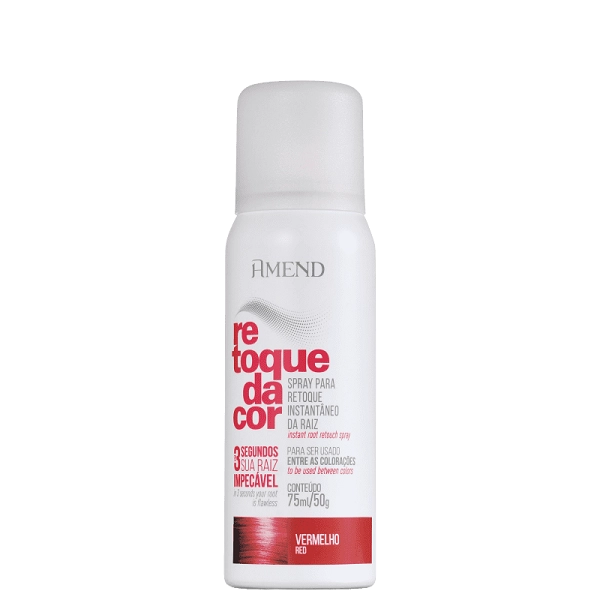 Amend Retoque de Cor 1213 Vermelho Corretivo de raiz em spray. Amend Retoque da Cor cobre os fios brancos e desbotados em instantes, de maneira natural e prática. Perfeito para quem colore os fios com frequência. Amend Retoque da Cor foi desenvolvido para facilitar o dia a dia e cobrir os fios quando não foi possível ir ao salão. Proporciona cobertura uniforme e de longa duração. É resistente ao calor e á água, além de ser compacto e fácil de carregar e aplicar em todos os lugares. Conselho de Aplicação Agite bem o frasco antes de usar. Posicione a 15 centímetros do cabelo e borrife sobre a área que deseja colorir. Para remover, lave com shampoo e água. Antes de utilizar, faça um teste de toque. Aplique uma pequena quantidade sobre a pele limpa e aguarde 24 horas. Se não perceber nenhuma reação alérgica, prossiga com o uso.