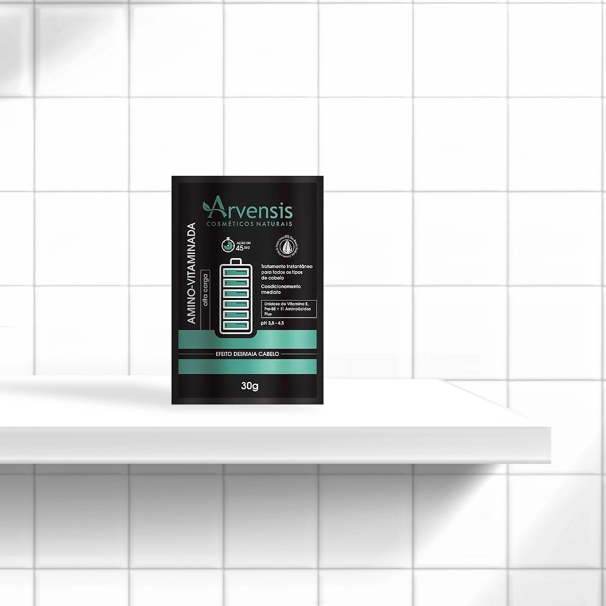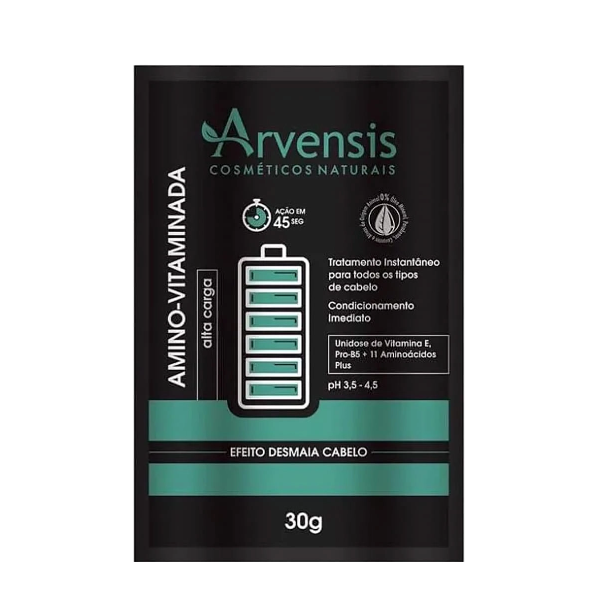 Arvensis Reposição Amino-Vitaminada - Tratamento Rápido e Nutritivo Oferece tratamento intensivo e rápido para cabelos opacos, enfraquecidos e danificados. Com aminoácidos, vitaminas, queratina vegetal e óleo de coco, nutre, fortalece e devolve vitalidade aos fios em apenas 45 segundos, promovendo condicionamento profundo e efeito desmaia cabelo. Conselho de Aplicação
