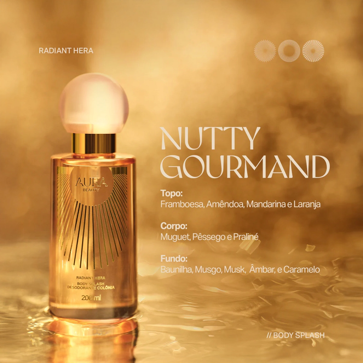 Ideal para o dia a dia, Radiant Hera vai conquistar o seu coração, com essa fragrância suave, envolvente, com magia luminosa e reconfortante. Com uma fragrância nutty gourmand única, sua fórmula mantém a pele delicadamente perfumada e hidratada, proporcionando um toque de frescor e elegância. Conselho de AplicaçãoAura Beauty Radiant Hera - Body Splash Desodorante Colônia 200ml