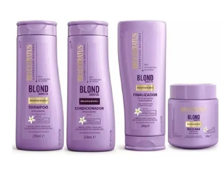 O Kit Contém A Linha Bio Extratus Blond Bioreflex promove uma hidratação e nutrição profunda, envolvendo o cabelo da raiz as pontas, agindo na estrutura interna dos fios. Shampoo Aplique sobre o cabelo molhado, massageando suavemente. Enxágue bem. Se necessário, repita a aplicação. Para um melhor resultado, use toda a Linha Blond Bioreflex. Condicionador Com os cabelo limpos e úmidos, aplique o Condicionador Bio Extratus Blond Bioreflex mecha a mecha no comprimento e pontas, massageando suavemente no sentido da raiz até as pontas. Deixe agir por alguns minutos e enxágue. Mascara Após lavar os cabelos, aplique a Máscara Hidratante Blond Bioreflex, massageando mecha a mecha. Para intensificar o tratamento use touca de hidratação. Deixe agir por 10 minutos. Enxágue. Para um melhor resultado. Finalizador Aplique ao longo de todo o comprimento dos fios, principalmente nas pontas e regiões mais danificadas. Escove o cabelo ou deixe secar naturalmenteBio Extratus Blond Bioreflex kit sh + cond + masc 500g + fina