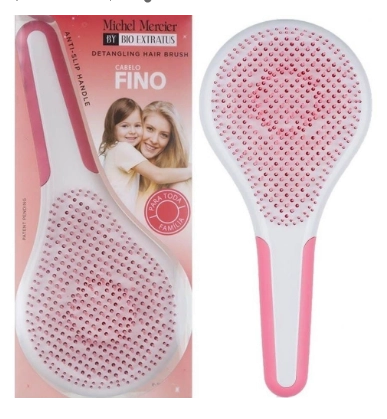 Além do design e das cores vibrantes, o que chama atenção na escova é a pouca tração que ela exerce sobre os fios, evitando a quebra. As cerdas com formas alternadas desembaraçam as madeixas com maior praticidade. Além disso, ela desliza suavemente em cabelos molhados ou secos, crespos ou lisos. Descrição do produtoBio Extratus Escova Michel Mercier Anti Slip Cabelos Finos