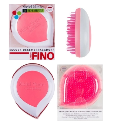 Além do design e das cores vibrantes, o que chama atenção na escova é a pouca tração que ela exerce sobre os fios, evitando a quebra. As cerdas com formas alternadas desembaraçam as madeixas com maior praticidade. Além disso, ela desliza suavemente em cabelos molhados ou secos, crespos ou lisos. Descrição do produtoBio Extratus Escova Michel Mercier Packn Go Cabelos Finos