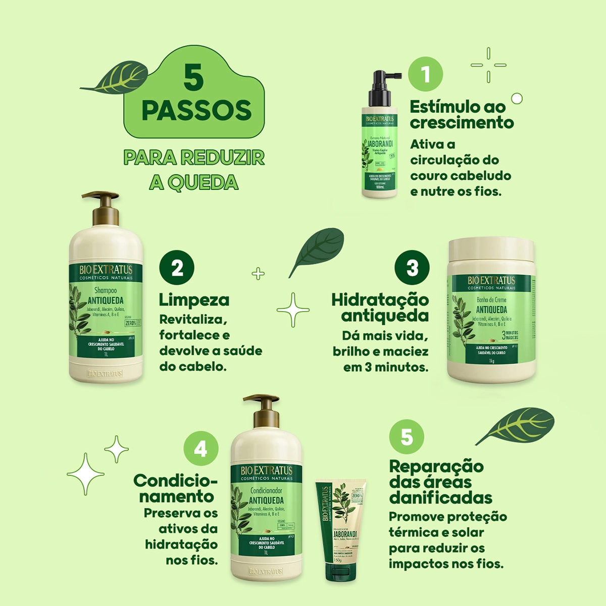 Ativa a circulação do couro cabeludo e nutre os fios, evitando a queda. Ajuda no crescimento saudável do cabelo. Conselho de Aplicação Aplique nas raízes massageando suavemente. Deixe agir por 15 minutos. Lave normalmente o cabelo. Pode ser adicionado ao banho de creme em hidratações capilares. Bio Extratus Extrato Jaborandi - Tônico Antiqueda 100ml