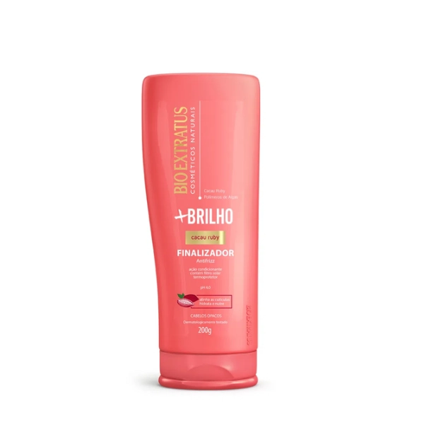 Fórmula antifrizz que protege os cabelos, deixando os fios perfeitamente alinhados. A combinação única de cacau ruby e polímeros de algas trata, nutre, hidrata e deixa os cabelos com muito + brilho. Modo de Usar Aplique sobre os cabelos úmidos e distribua ao longo dos fios, principalmente nas pontas e regiões mais danificadas. Não enxágue. Penteie normalmente. Pode ser usado antes de escovar, para proteger os fios. Use também os outros produtos da linha mais brilho.Bio Extratus Mais Brilho - Finalizador 200g