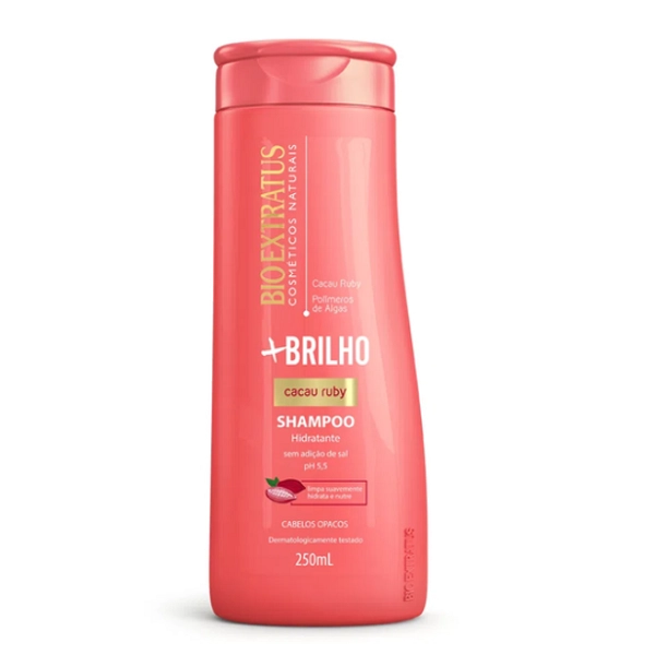 O shampoo mais brilho promove limpeza suave que devolve o balanço natural. A combinação única de cacau ruby e polímeros de algas trata, nutre, hidrata e deixa os cabelos com muito + brilho. Modo de Usar Aplique nos cabelos molhados, massageando suavemente. Enxágue bem. se necessário, repita a aplicação. Use também os outros produtos da linha mais brilho.Bio Extratus Mais Brilho - Shampoo 250ml