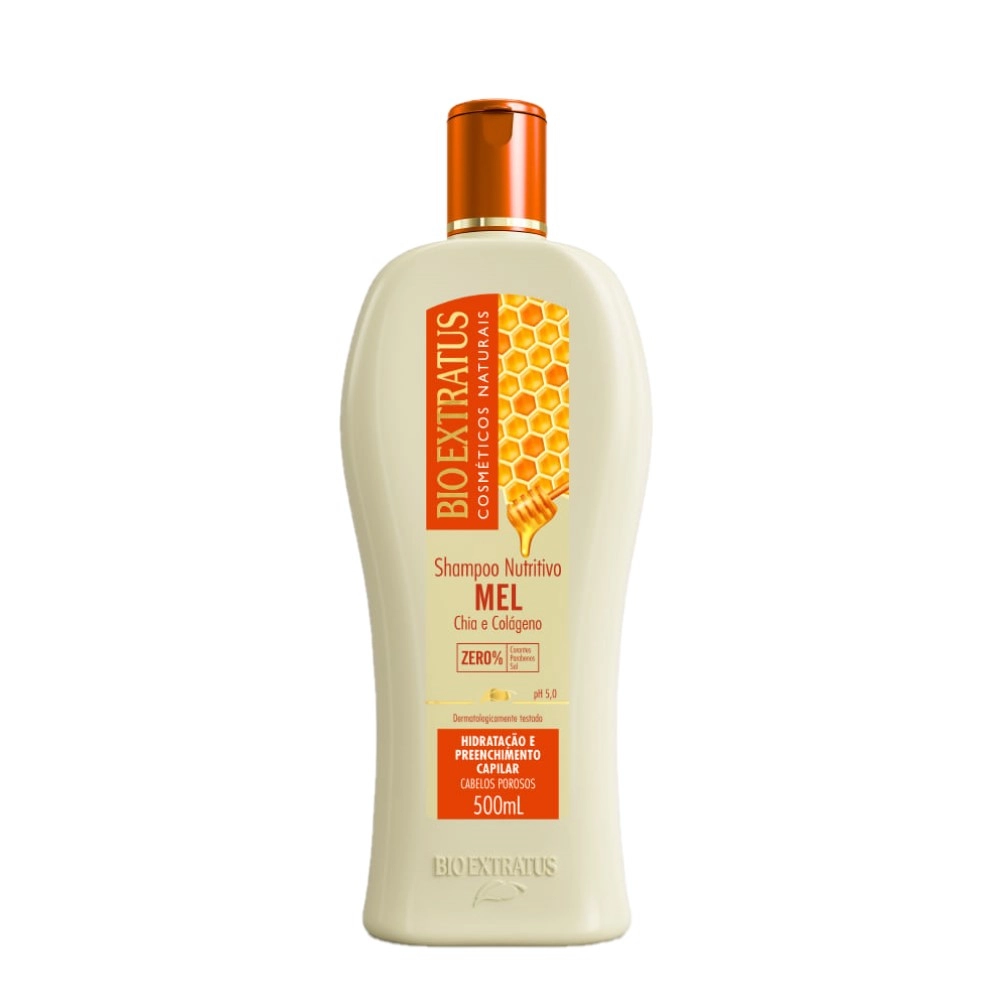 O Shampoo Nutritivo Bio Extratus Mel promove limpeza hidratante e nutritiva, e inicia o tratamento de preenchimento dos fios porosos. Mel, chia e colágeno juntos, repõem umidade, massa e nutrientes em profundidade. Conselho de Aplicação Aplique nos cabelos molhados, massageando suavemente e enxague. Se necessário, repita a aplicação. Bio Extratus Mel – Shampoo Nutritivo 500ml
