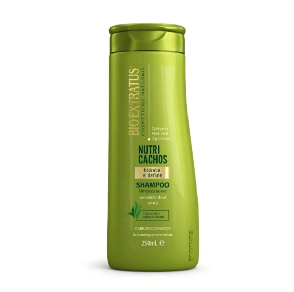 Hidratação Biológica que controla o volume e liberta os cachos. Exclusiva composição que associa a ação restauradora do Colágeno, a emoliência da Aloe Vera e a nutrição do D’Pantenol. SHAMPOO - LIMPEZA SUAVE BÁLSAMO HIDRATANTE - CONDICIONAMENTO INTENSIVO FINALIZADOR HIDRATANTE - BRILHO E PROTEÇÃO INDICAÇÃO Bio Extratus Nutri Cachos Shampoo+Condicionador 250ml+Finalizador 200ml