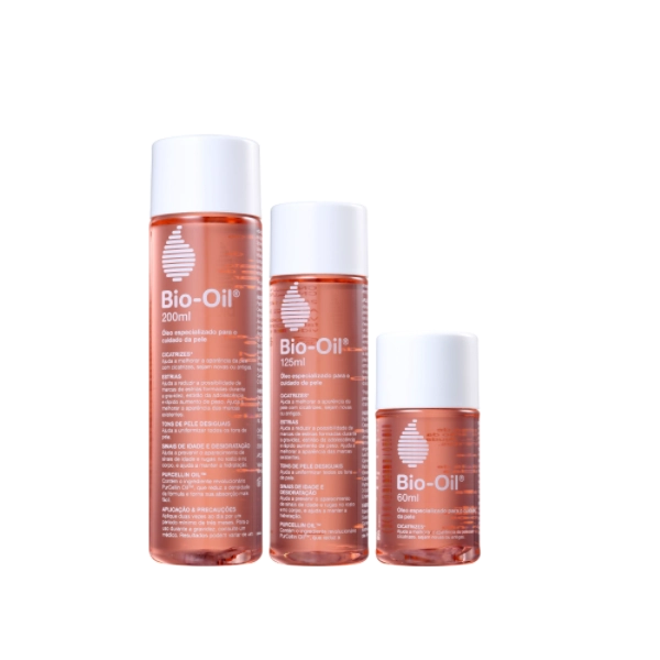 Kit Bio-Oil Trio Óleo Restaurador com três produtos para rosto e corpo. Melhora a aparência de cicatrizes, estrias e sinais de idade, além de reparar tons desiguais na pele e hidratá-la fortemente por muito mais tempo. Com três tamanhos diferentes, para ter sempre um pertinho de você o Kit Bio-Oil Trio Óleo Restaurador é ideal para sua rotina de cuidados com a pele, ele hidrata e nutre fortemente a pele do rosto e do corpo, deixando-a com uma melhor aparência. Contém: Bio-Oil - Óleo Restaurador 60ml + 125ml + 200ml: hidrata e nutre com seus extratos vegetais e vitaminas. Possui fórmula leve e não pegajosa, conferindo rápida absorção pela pele.Bio-Oil Trio Óleo Restaurador (3 produtos)