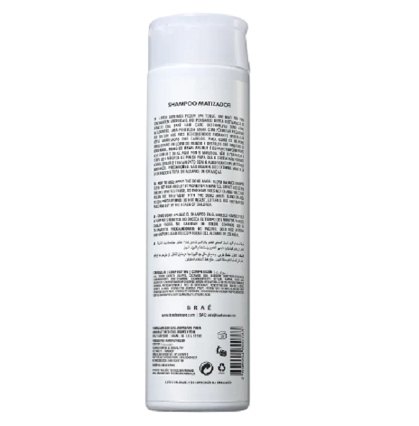 Kit Contém: 1 Shampoo Matizador 250ml Shampoo: Shampoo matizador para cabelos loiros e grisalhos. Neutraliza tons amarelados e confere um efeito platino em poucos instantes. O Shampoo faz uma limpeza suave, que não agride os fios. Possui ação remineralizante e nutritiva para resgatar aspecto saudável dos cabelos, que ganham brilho e beleza. Aplique o shampoo e espalhe uniformemente por todo o cabelo. Deixe agir por 5 minutos, no máximo. Enxágue completamente. Evite ao máximo ultrapassar o tempo de 5 minutos de pausa do shampoo matizador. Aumentar o tempo de ação do produto pode manchar o cabelo. Plex Efect Bond Fortifier possui um blend de micro moléculas hidrolizadas que é absorvido com mais facilidade pelos fios, atuando na recuperação da fibra capilar e aumentando a resistência sobre qualquer tensão causada por produtos químicos. Conselho de Aplicação: Distribua o Bond Fortifier mecha a mecha, começando pelas pontas. Massageie suavemente até chegar próximo à raiz. Deixe agir de 10 a 15 minutos. Enxágue. Finalize como desejar. (O Bond Fortifier deve ser usado somente duas vezes por semana). Utilize o Bond Angel Fortifier 15 dias antes de realizar processos químicos nos fios para fortalecer a fibra capilar. Brae Bond Angel Matizador pH