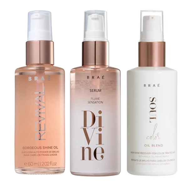 BRAE Cronograma Capilar Color Oil 60ml 3 unidades O cronograma capilar COLOR é indicado para a proteção contra o desbotamento da cor, aliada a hidratação, nutrição e reconstrução dos fios. Contem: BRAÉ Revival - Oil Gorgeous Shine 60ml: para cabelos danificados e fragilizados. BRAÉ Revival Gorgeous Shine Oil nutre e fortalece as pontas, além de devolver a vitalidade aos fios. BRAÉ Divine - Oil Plume Sensation 60ml: Sérum reparador para todos os tipos de cabelo. BRAÉ Divine Plume Sensation nutre e combate danos como o frizz e as pontas duplas. BRAÉ Soul Color - Oil Blend 60ml: para cabelos coloridos ou com mechas. BRAÉ Soul Color Oil Blend protege a cor, hidrata intensamente e fortalece o fio, além de contar com poderosa ação antioxidante. Conselho de Aplicação Aplique algumas gotas do sérum na palma das mãos e espalhe no comprimento dos cabelos até completa absorção. Finalize como desejar.