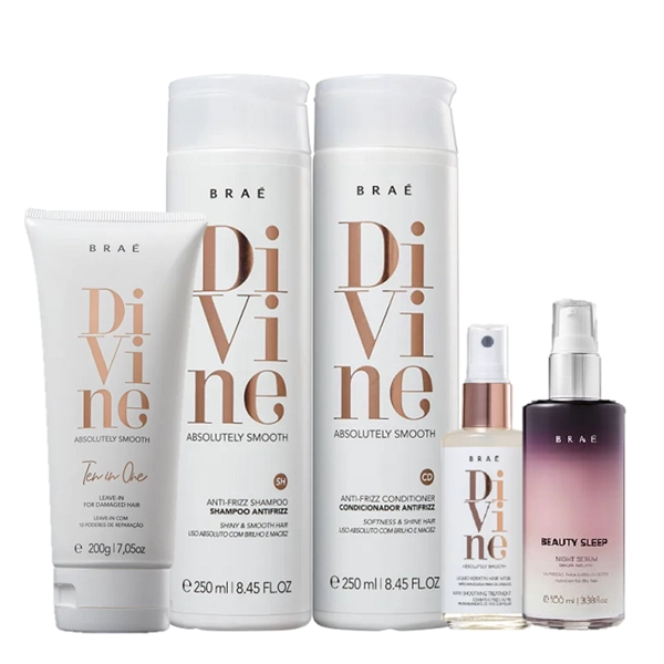 Braé Divine Antifrizz Kit Duo 250ml Leave-in 200ml Mascara Queratina 60ml e Beauty Sleep 100ml