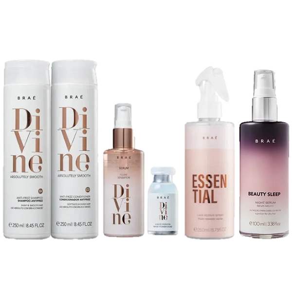 Braé Divine Duo 250ml Serum Plume 60ml Ampola 13ml Essential 260ml e Beauty Sleep 100ml