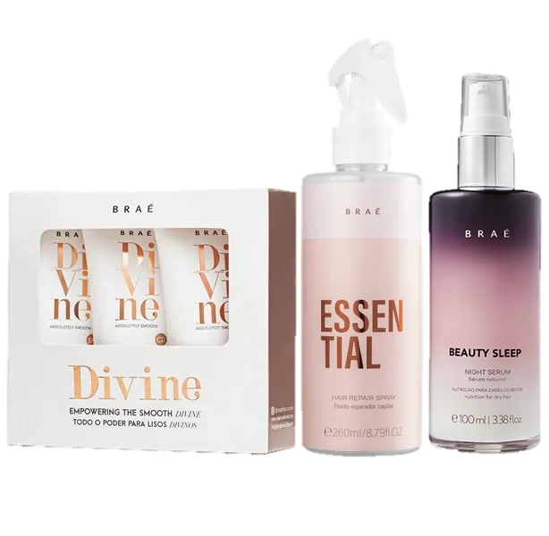 Braé Divine Kit Miniatura 60ml Essential Hair Spray 260ml e Beauty Sleep 100ml