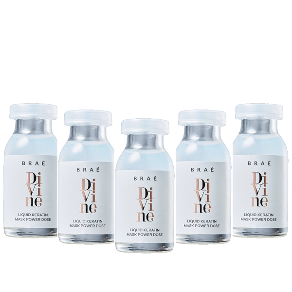5 Power Dose Divine Ampola de Tratamento 13ml cd. Ampola de tratamento concentrado para cabelos danificados. BRAÉ Divine Power Dose promove reparação, hidratação e brilho intenso de maneira rápida e com ação imediata. A Ampola BRAÉ Divine Power Dose oferece em poucos minutos um cabelo novo, macio e emoliente. Sua fórmula traz óleos de jojoba, abacate e coco, onde proporcionam equilíbrio para a estrutura da fibra capilar e sela as cutículas para um cabelo sem frizz. Além disso, a ação dos ácidos graxos protegem o couro cabeludo, garante toque suave e luminosidade ao seu visual Lave o cabelo com shampoo e agite a ampola antes de usar. Aplique sobre os fios limpos e úmidos, enluvando mecha a mecha. Deixe Agir por 3 minutos e enxágue. Brae Divine Power Dose Ampola de Tratamento 13ml 5un