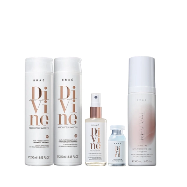 Braé Divine Shampoo+Condicionador 250ml+Queratina Liquida 60ml+Ampola 13ml+Leave-in Revival 200ml