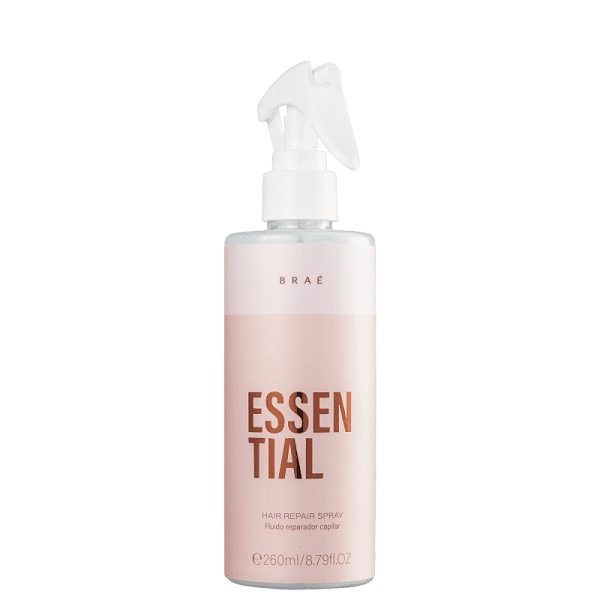 Brae Essential - Hair Repair Spray 260ml ESSENTIAL para todas. Braé apresenta o fluido finalizador reparador ESSENTIAL, para a sua rotina de hair care se tornar ainda mais possível, prática e versátil. Ação Formulado com Ácido Hialurônico, Monoi oil, Blend de Aminoácidos, Pantenol e Óleo de Coco. Através de suas propriedades reparadoras, hidratantes e protetoras, proporciona cabelos mais macios, sedosos, fortalecidos, cores mais duradouras e com brilho absoluto. Conselho de aplicação Agite antes de usar. Com os cabelos úmidos ou secos, aplique no comprimento e pontas uma quantidade suficiente para envolver os fios, penteie e massageie suavemente proporcionando melhor espalhabilidade nos cabelos. Finalize com secador/prancha criando o seu style favorito. BRAÉ Soul Color - Shampoo 250ml Para cores muito mais duradouras, reluzentes, fios extremamente nutridos e AÇÃO E BENEFÍCIOS Elaborado com PROTEÍNA DO ARROZ, BLEND DE AMINOÁCIDOS E PANTENOL, COMO USAR Aplique o shampoo SOUL COLOR nos cabelos molhados e massageie o couro cabeludo Deixe a espuma do shampoo agir por 3 minutos em contato com o couro cabeludo e RESULTADO COR LIVRE DE DESBOTAMENTO, FIOS EXTREMAMENTE NUTRIDOS,Brae Essential Hair Repair Spray 260ml e Shampoo Soul Color 250ml