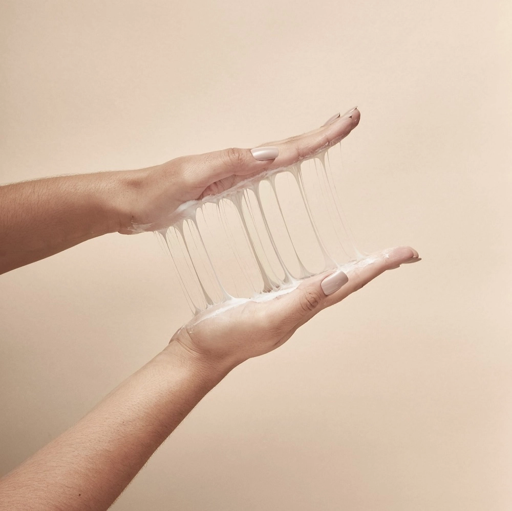 2. Aperte uma palma contra a outra para ativar o efeito “teia”. O efeito teia favorece a distribuição do produto, é fundamental para ativar a fórmula. Após essa ação, aplique a máscara em todo o comprimento e pontas do cabelo.