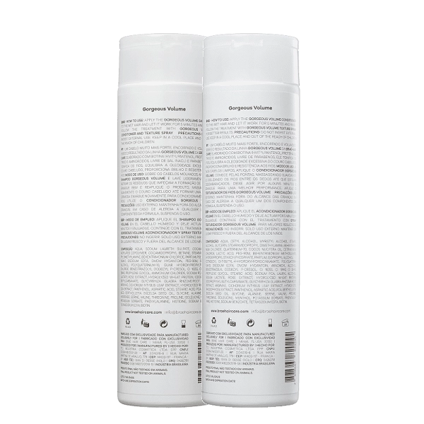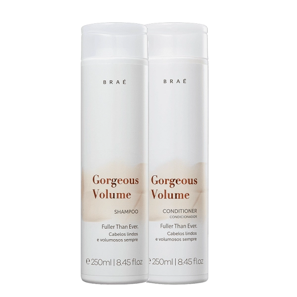 Os produtos do Kit BRAÉ Gorgeous Volume Duo equilibram a oleosidade do couro cabeludo, fortificam e encorpam a fibra capilar, enquanto hidratam o cabelo. Suas fórmulas equilibram a oleosidade, proporciona mais brilho e volume aos fios. Contém: BRAÉ Gorgeous Volume - Shampoo 250ml: limpa suavemente os fios enquanto proporciona mais corpo e resistência para a fibra capilar. BRAÉ Gorgeous Volume - Condicionador 250ml: condiciona e promove maior volume para os fios. Aplique o shampoo sobre os cabelos molhados e massageie o couro cabeludo até a formação de uma espuma cremosa. Enxágue bem e reaplique o produto. Enxágue novamente. Depois, aplique o condicionador e massageie suavemente. Deslize os dedos entre os fios para penteador e faça uma pequena pausa para o produto agir intensamente. Enxágue totalmente.