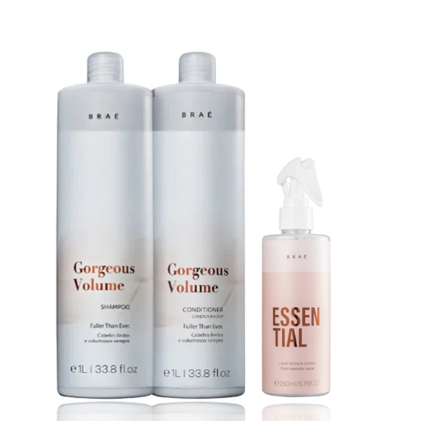 Braé Gorgeous Volume - Shampoo+Condicionador 1L +Essential 260ml