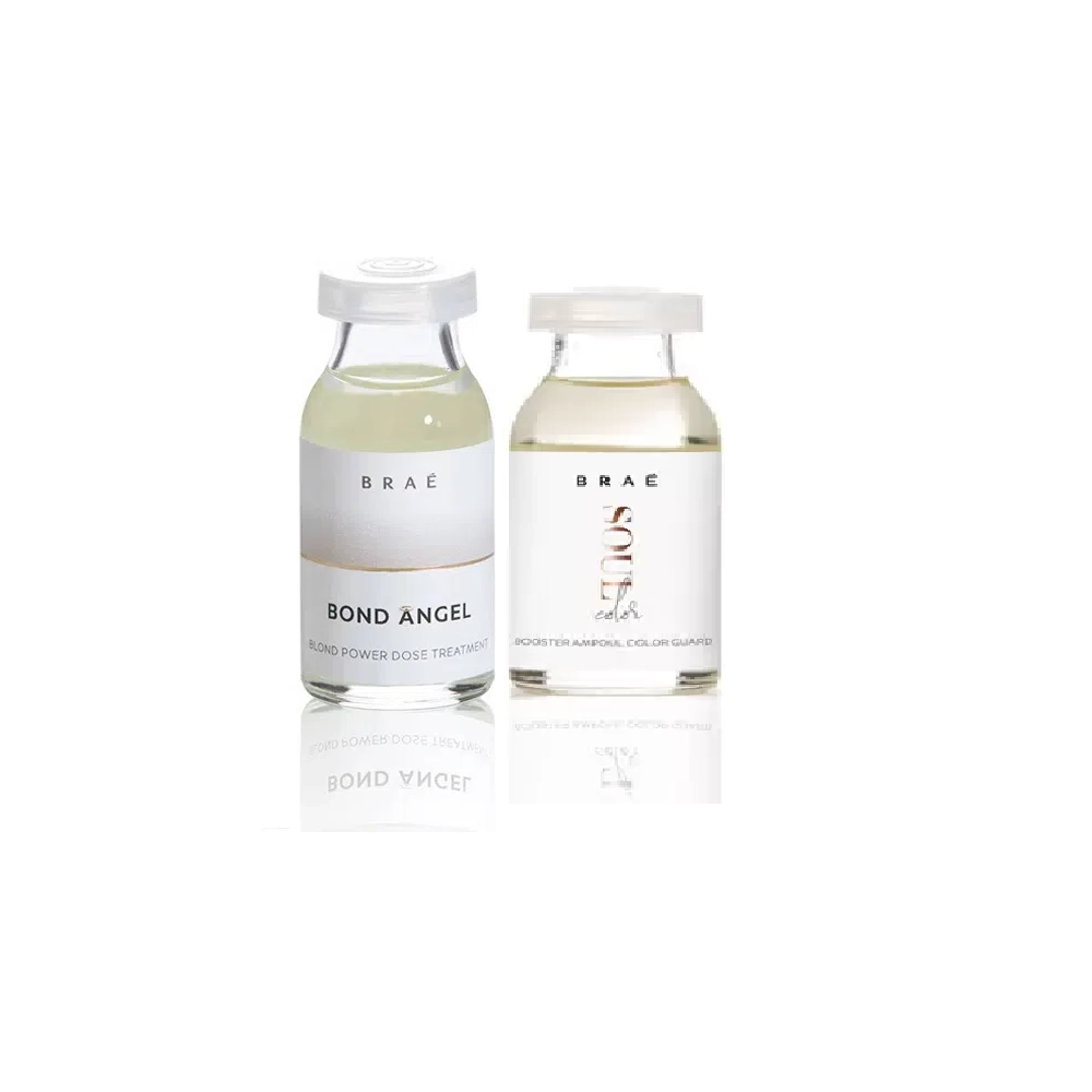 Ampola de tratamento para cabelos loiros ou descoloridos. BRAÉ Bond Angel Blond Power é ideal para o seu cuidado pós-química, já que fortalece o fio e ajuda a reconstruir a fibra capilar. A Ampola de Tratamento BRAÉ Bond Angel Blond Power foi especialmente desenvolvida para resgatar a boa saúde dos fios que passaram por processos químicos invasivos, como tintura e descoloração. Com fórmula exclusiva e inteligente, além de ingredientes de alta performance, o produto nutre intensamente, hidrata de maneira profunda, promove brilho intenso e ainda devolve o toque sedoso. Ampola de tratamento para cabelos coloridos ou com mechas. BRAÉ Soul Color Booster Ampoule hidrata, resgata a maciez e evita a oxidação da cor, além de fortalecer e proteger a fibra capilar. A Ampola de Tratamento BRAÉ Soul Color Booster Ampoule combina ingredientes poderosos, como Óleo de Amla e Vitamina E, para promover ação regeneradora instantânea. O produto também evita o desbotamento, nutre intensamente e devolve a vitalidade perdida.BRAÉ Bond Angel Blond Power