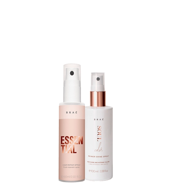 Leave-in com proteção térmica para todos os tipos de cabelo. BRAÉ Essential Fluido Reparador oferece hidratação progressiva e repara os danos acumulados, além de ajudar a reestruturar a fibra capilar. O Leave-In BRAÉ Essential Fluido Reparador foi especialmente desenvolvido para facilitar a sua rotina de cuidados com os fios. Com formulação exclusiva e ingredientes de alta performance - como os já consagrados Ácido Hialurônico, Monoi Oil, Blend de Aminoácidos, Pantenol e Óleo de Coco -, o produto impede a ação danosa causada pelo calor emitido por ferramentas térmicas, promove brilho intenso, assegura toque macio e ainda protege de agressões externas. Sérum capilar para cabelos coloridos ou com mechas. BRAÉ Soul Color Oil Blend protege a cor, hidrata intensamente e fortalece o fio, além de contar com poderosa ação antioxidante. O Sérum Capilar BRAÉ Soul Color Oil Blend apresenta formulação exclusiva e inteligente, capaz de nutrir de maneira profunda. Com Óleo de Amla e Vitamina E na composição, o produto também sela as cutículas, promove brilho intenso, melhora o toque e ajuda a recuperar as pontas danificadas. Livre de Parabenos e Sais. Óleo de Amla: hidrata de maneira profunda, oferece ação antioxidante e ainda ajuda a estimular o crescimento dos fios. Conselho de Aplicação Agite antes de usar. Com os cabelos úmidos ou secos, aplique uma pequena quantidade de produto diretamente sobre o comprimento e pontas dos fios. Espalhe bem e finalize com como preferir. Deposite algumas gotas de sérum nas mãos e esfregue-as em seguida. Depois, espalhe o produto por toda a região das pontas dos fios e massageie até notar sua completa absorção. Braé MINI Essential e Oil Soul Color 60ml