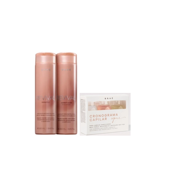 Braé Revival Shampoo+Condicionador 250ml+Cronograma Capilrar Repair Kit 3 Ampolas