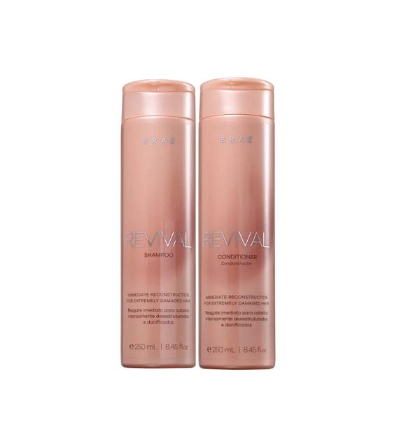 1 Shampoo Revival 250ml 1 Condicionador Revival 250ml 1 Mascara de Reconstrução Revival 200g 1 Cronograma Capilrar Repair Kit 3 Ampolas Shampoo para cabelos danificados e fragilizados. BRAÉ Revival Shampoo Reconstrutor ajuda na recuperação dos fios desestruturados. O Shampoo Revival BRAÉ faz uma limpeza suave e prepara o cabelo para receber o tratamento condicionante. Seus compostos vitamínicos ajudam a resgatar gradativamente as camadas sensibilizadas dos fios. Assim, deixa o cabelo mais brilhante e resistente, com uma vida nova. Conselho de Aplicação Aplique o shampoo nos cabelos molhados e massageie o couro cabeludo até formar espuma. Enxágue. Repita o procedimento se sentir necessidade. Condicionador para cabelos danificados e fragilizados. BRAÉ Revival Condicionador Reconstrutor recupera a fibra capilar para trazer força e beleza aos fios. O Condicionador Revival BRAÉ age internamente nos poros do cabelo para dar estrutura às áreas danificadas. Seus compostos vitamínicos resgatam gradativamente as camadas sensibilizadas dos fios para deixar o cabelo mais brilhante e resistente, com uma vida nova. Conselho de Aplicação Espalhe o condicionador sobre os fios úmidos depois de usar o shampoo. Comece pelas pontas, massageie suavemente e deslize os fios entre os dedos até que estejam desembaraçados. Deixe agir por alguns minutos e enxágue. Máscara de reconstrução para cabelos danificados e fragilizados. BRAÉ Revival Máscara recupera e protege a fibra capilar para que ela fique forte, brilhante e hidratada. A Máscara Revival BRAÉ age internamente nos poros do cabelo para dar estrutura às áreas danificadas. Forma uma camada protetora em torno do fio para deixar o cabelo mais brilhante e resistente, com uma vida nova. Conselho de Aplicação Lave o cabelo com shampoo e agite a ampola antes de usar. Aplique sobre os fioslimpos e úmidos, enluvando mecha a mecha. Deixe Agir por 3 minutos e enxágue.BRAE Revival Shampoo+Condicionador 250ml+Mascara 200ml+Cronograma Capilrar Repair Kit 3 Ampolas