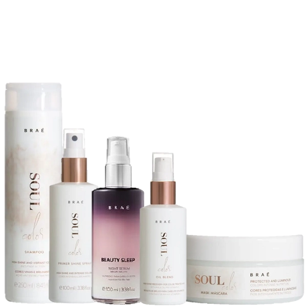 Braé Soul Color Shampoo 250ml Mascara 200g Oil Blend 60ml Prime Spray 100ml e Beauty Sleep 100ml
