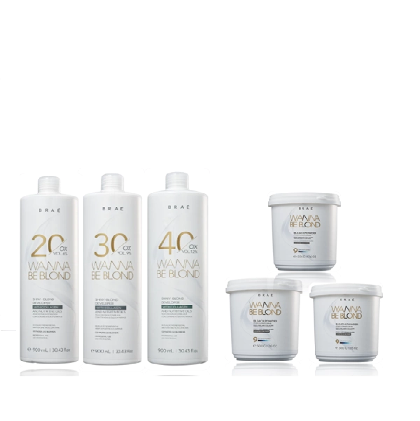 Braé Wanna Be Blond Água Oxigenada 20V 900ml+Água Oxigenada 30V 900ml+Água Oxigenada 40v+3 Pó Descolorantes 500g