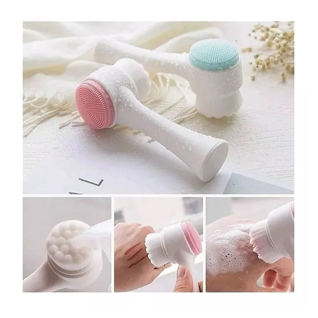 Brinde Escova de Limpeza e Massagem Facial 2 em 1 (Cor Branco/Rosa)