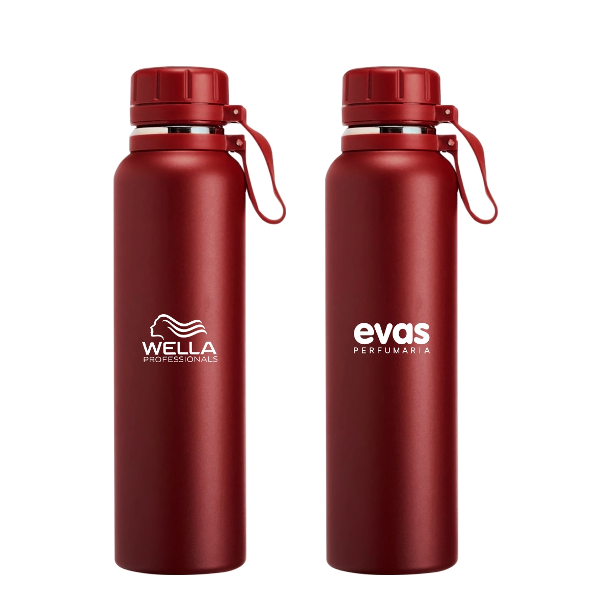 Garrafa Infusor de Alumínio 1L na cor vermelha, com alça para facilitar o transporte no dia a diaBrinde Wella Collab Evas Garrafa Infusor de Alumínio 1L