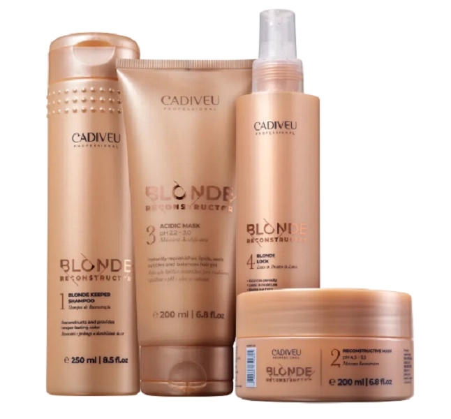 Cadiveu Blonde Reconstructor Shampoo 250ml+Mascara Reconstrução+Acidificante+Leave-in 200ml