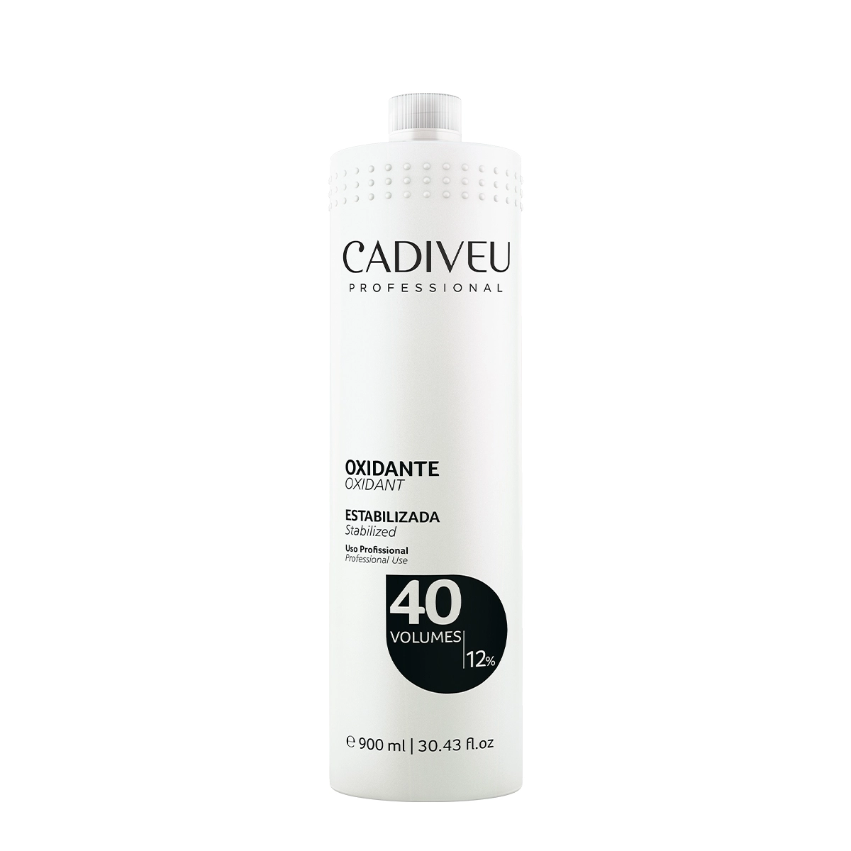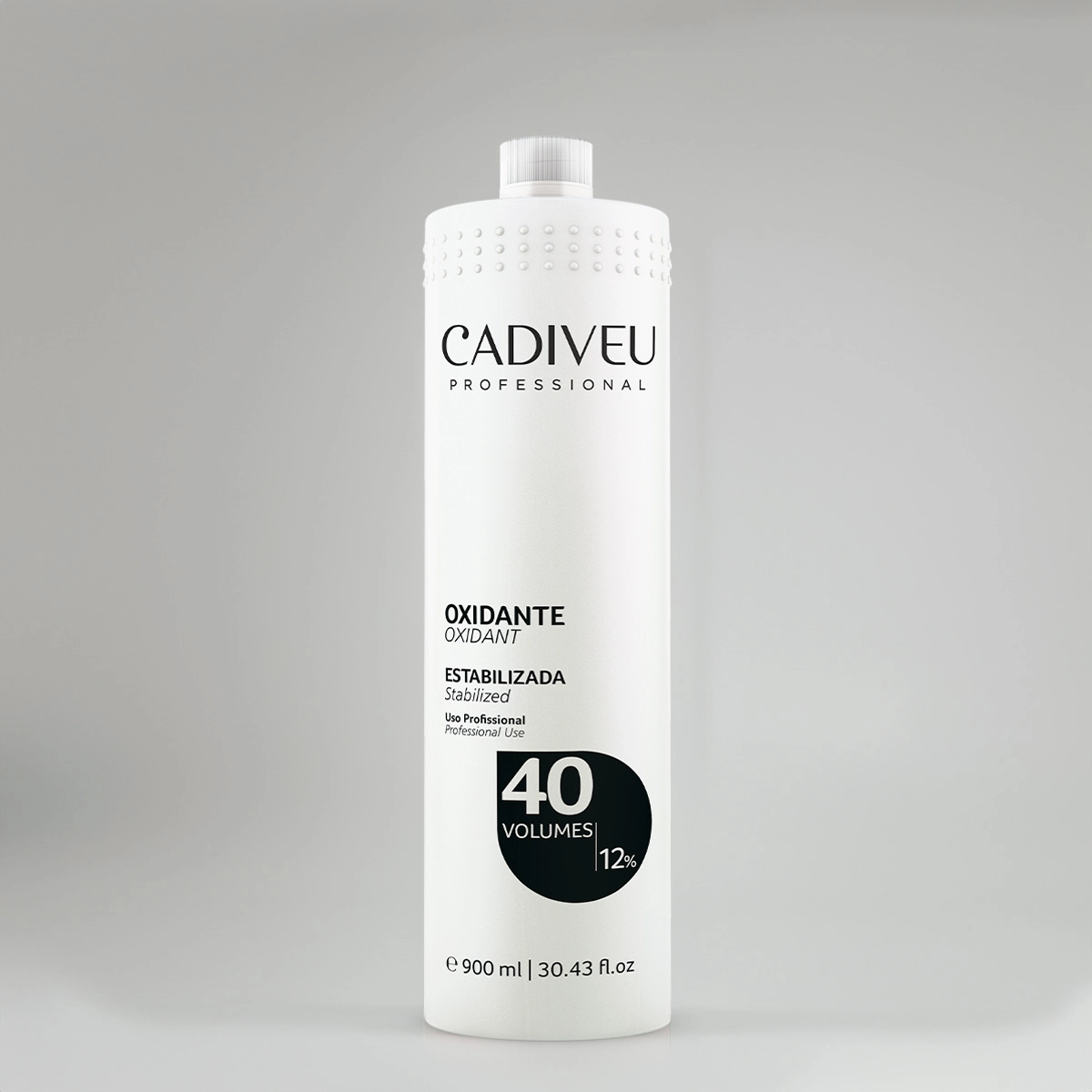 Para todos os tipos de cabelo.clareia o tom em vários níveis de forma uniforme. conta com uma fórmula estabilizada, que garante resultado homogêneo impecável. Quando usado em conjunto com colorações ou pó descolorante, promove uma abertura de até 8 tons. Conselho de Aplicação Cadiveu Professional OX 40 Volumes - Água Oxigenada 900ml