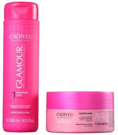 Kit de tratamento diário para cabelos quimicamente tratados. Kit Cadiveu Professional Glamour Glossy Rubi nutre e fortalece os fios com disciplina.
