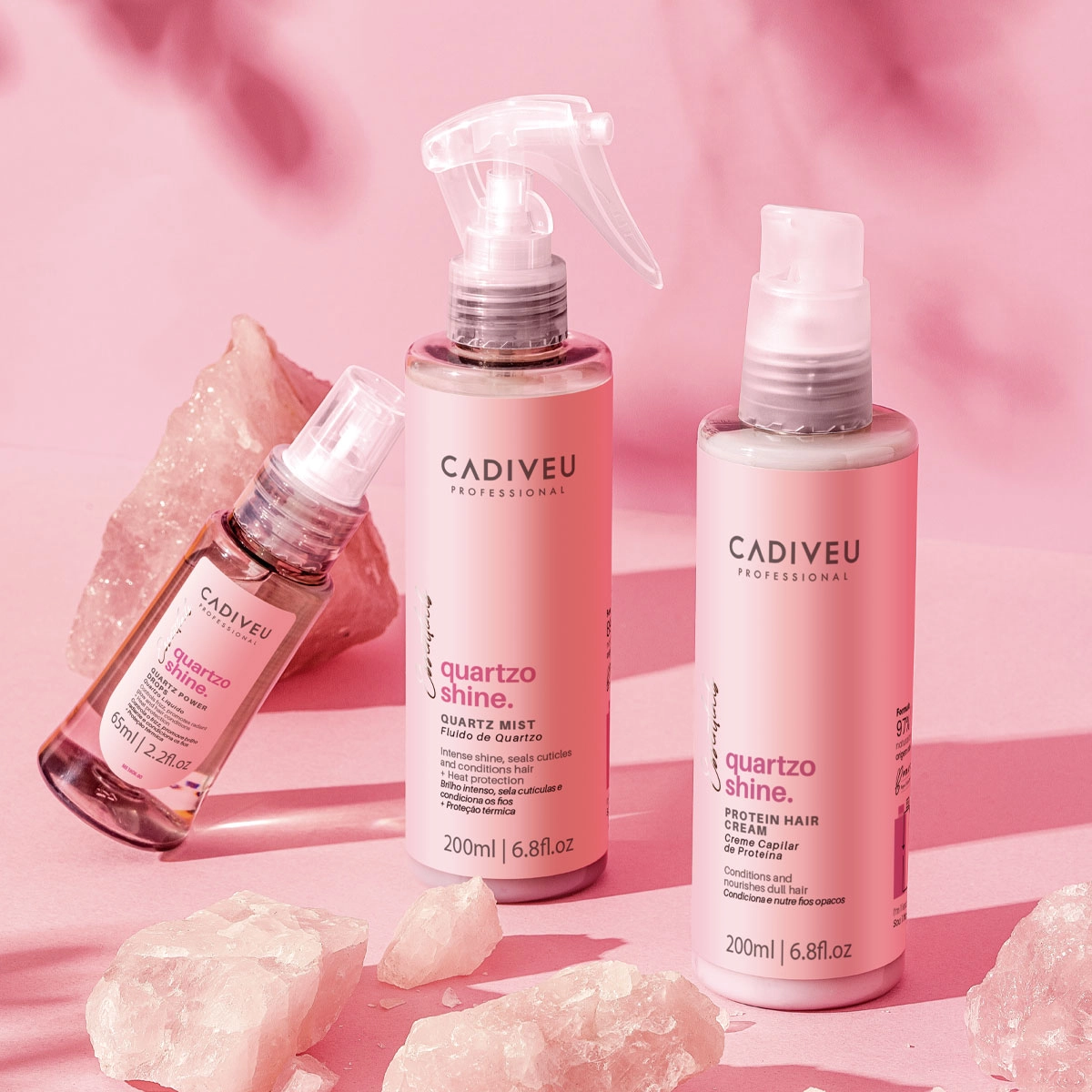 É a nova versão da antiga Máscara Boca Rosa Hair e o que já era bom ficou ainda melhor. Enriquecido com partículas de quartzo rosa, dá equilíbrio da raiz às pontas, proporcionando leveza e brilho tridimensional. O produto tem 93% de ingredientes de origem natural, além de não fazer testes em animais. A embalagem é 100% reciclada, feita de outros frascos que já foram utilizados. Fórmula 100% Vegana. Conselho de AplicaçãoCadiveu Professional Quartzo Shine - Fluido Condicionante 200ml