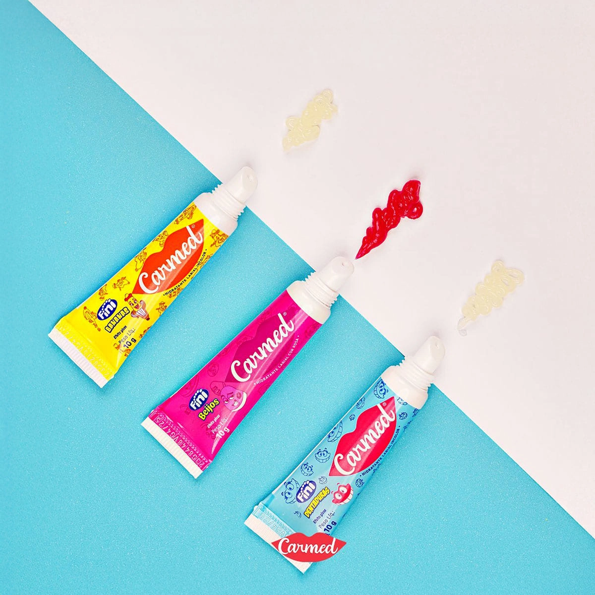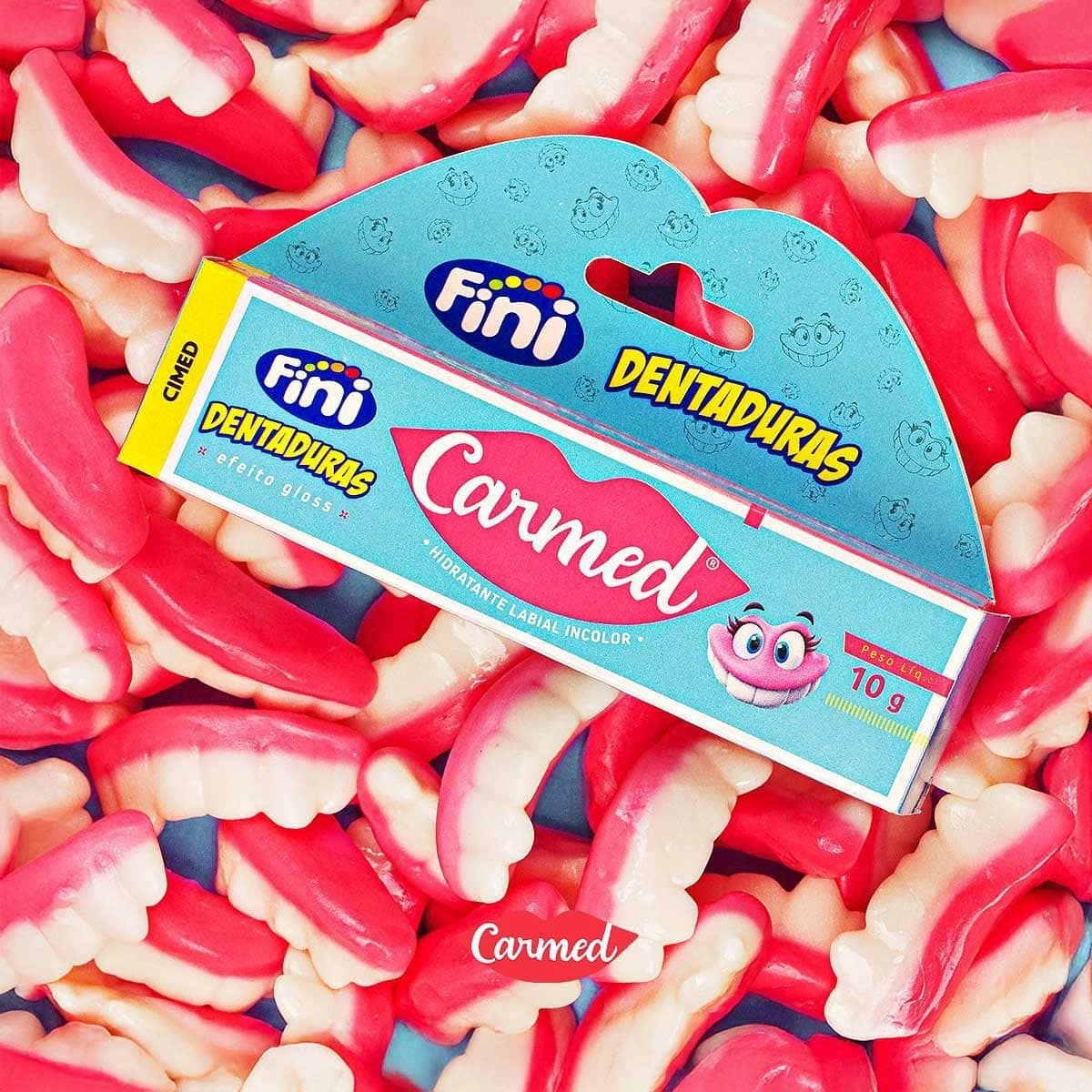 Carmed Fini Dentaduras Incolor - Hidratante Labial 10g Ideal para lábios bonitos, macios, intensamente hidratados e protegidos contra o ressecamento. Enriquecido com ingredientes nutritivos e hidratantes, que auxiliam a manter a umidade natural dos lábios. Incolor, com um aroma e gostinho do Fini Dentaduras, pode ser utilizado em conjunto com outros batons.