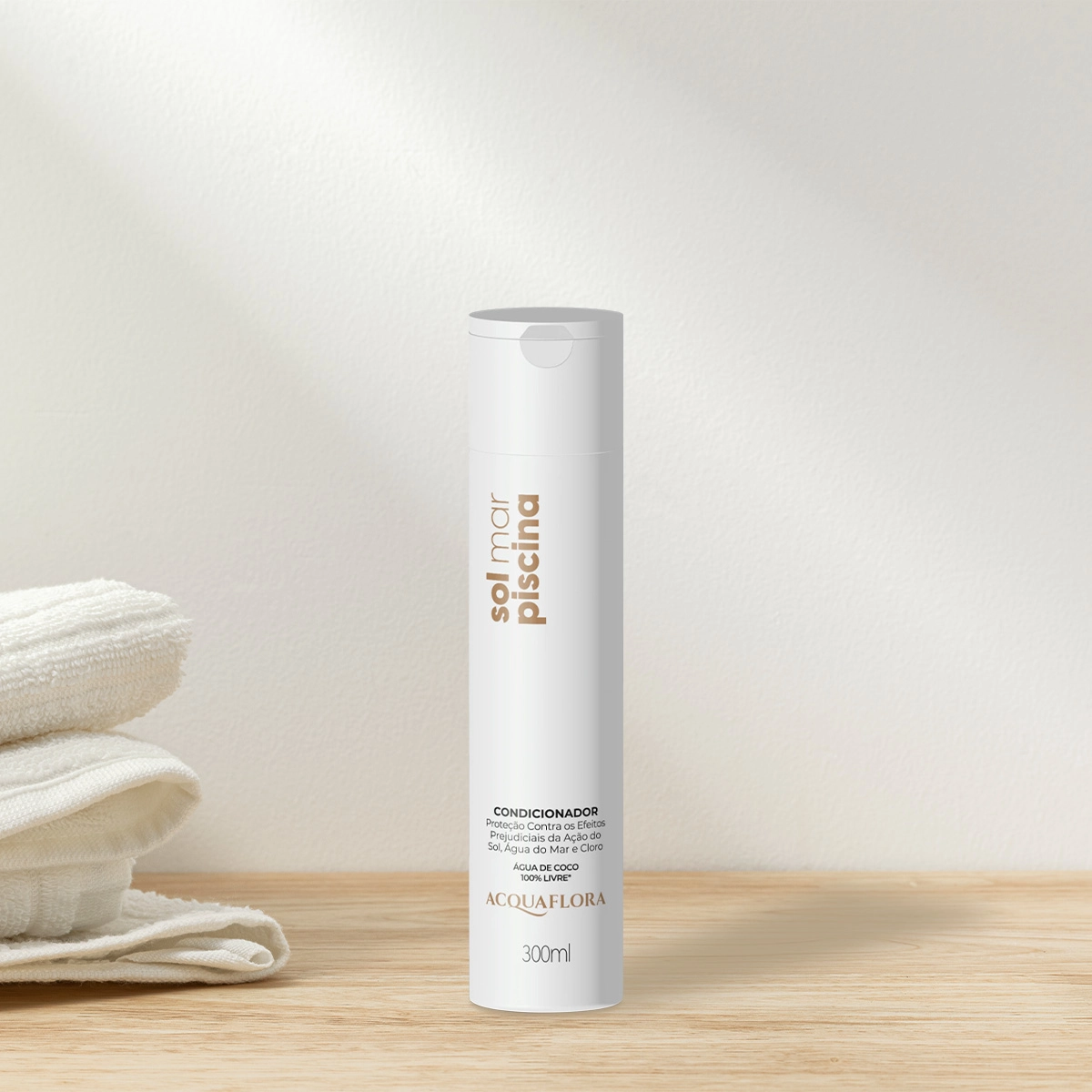 Acquaflora Sol Mar Piscina Condicionador para cabelos expostos ao sol, mar e piscina. Desembaraça, condiciona e protege a fibra capilar das agressões causadas pela água do mar e cloro da piscina. Com Acquaflora Sol Mar Piscina Condicionador os fios ficam super macios e saudáveis. Conselho de Aplicação Com o cabelo limpo e úmido, passe o condicionador por todo o comprimento dos fios. Massageie por alguns minutos e enxágue.