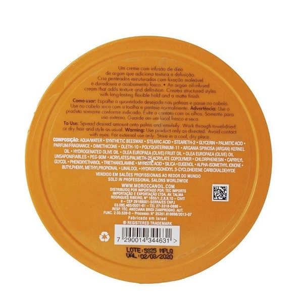 Espalhe uma quantidade do Creme Modelador Moroccanoil Molding Cream desejada na palma das mãos e distribua nos fios. Use nos fios secos com a toalha e penteie normalmente.