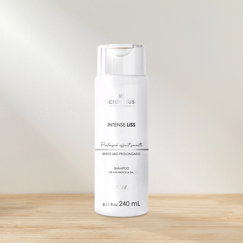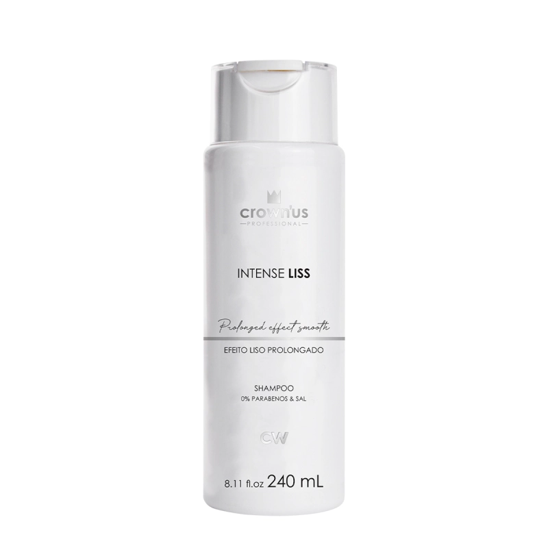 Crown'us Intense Liss - Fios Alinhados e Sem Frizz Limpa profundamente, removendo impurezas e preparando os fios para o tratamento. Deixa os cabelos disciplinados, alinhados e sem frizz, proporciona brilho intenso e toque macio, mantendo a saúde dos fios. Fórmula livre de sal e parabenos. Conselho de Aplicação