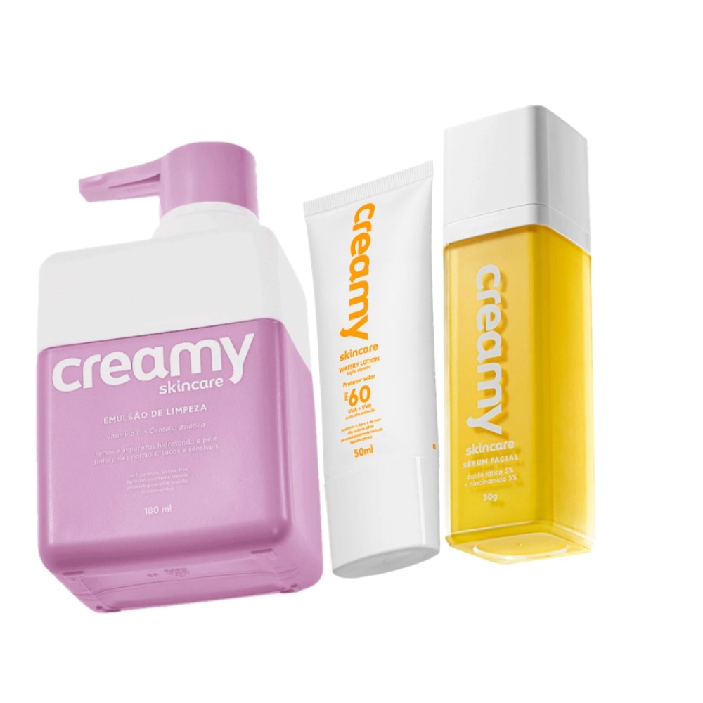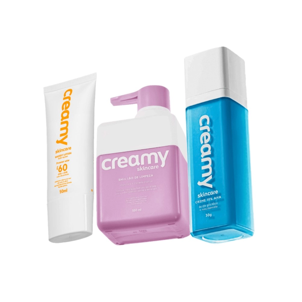 Kit Creamy Skincare Emulsão de Limpeza Protetor Solar FPS 60 Glocólico (3 produtos)