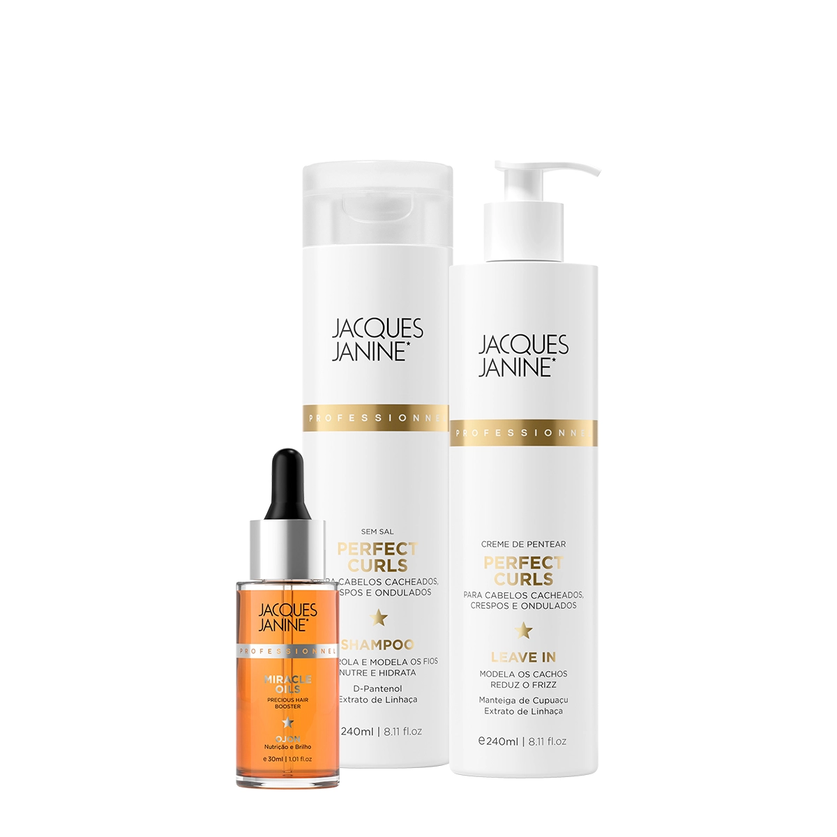 Kit Jacques Janine Professionnel Perfect Curls Shampoo Leave-in e Oils Monoi (3 produtos)